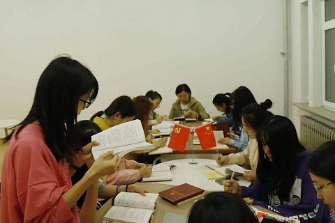 本科生党支部书记杨承程领学,与会学生党员研读习近平总书记的相关论述,表达了自己对“不忘初心、牢记使命”深刻意义的认识和理解,纷纷表示自己要始终坚持习近平新时代中国特色社会主义思想,坚定马克思主义信仰、中国特色社会主义信念、实现中华民族伟大复兴中国梦的信心,要树立更高的目标,时刻铭记中国共产党人的初心和使命。