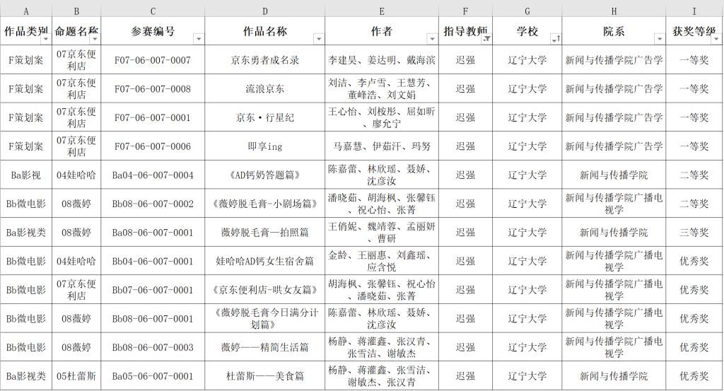 近日,2019年辽宁省普通高等学校大学生广告艺术大赛暨2019年第十一届全国大学生广告艺术大赛辽宁赛区公布了学生获奖名单,我院16级广告学专业和17级广播电视学专业报送的作品共获得一等奖四项、二等奖两项、三等奖一项、优秀奖五项。报名参赛的学生获奖率达百分之百,迟强老师被评为优秀指导教师。