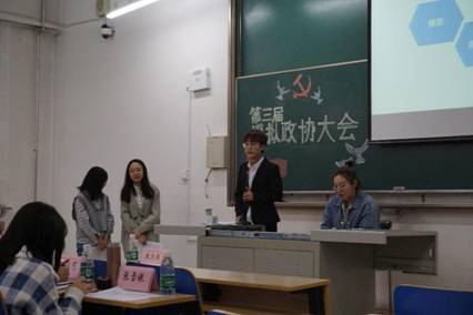 为积极响应习近平总书记在党的十九大报告中对青年人的深厚寄望,我院分团委组织部及宣传部于2019年4月25日晚6点在博雅203教成功开展了“模拟政协进行时”主题模拟政协大赛。