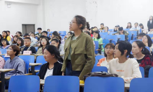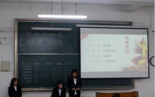 本次活动共分为四大环节。在首先进行的抢答赛环节,由我院2019级各班派出的六支队伍抽签决定分组,两两对决,限时30秒,学生热情满满,答题迅速准确。在第二轮的车轮擂主赛,各组派出一名代表抽取人物卡片,并选出擂主方,向其他小组发起挑战,胜者成为新擂主,以此类推。各组队员奋力出击,为荣誉而战,现场气氛进入高潮。第三轮为风险赛,共设五档不同分值的问题,各组自由选择一题作答,限时一分钟,场上比分一度出现逆转,惊险不断。比赛环节结束后,进入“你画我猜”的互动环节,学生积极参与,现场氛围轻松愉悦。活动结束后,由学生干部代表为获奖选手颁奖,到场嘉宾和全体参赛选手合影留念。