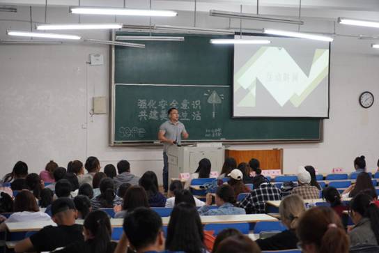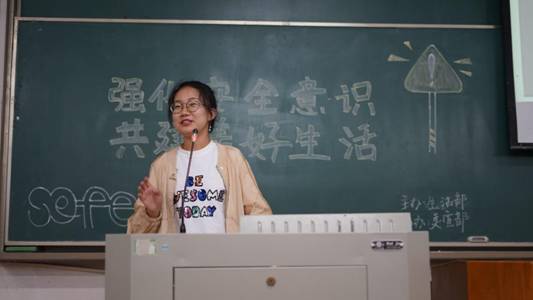 新闻与传播学院于6月3日在博雅106开展由生活部主办的“强化安全意识,共建美好生活”安全主题大会活动,本次活动有学院辅导员老师和学生会干部到场,以及18级全体本科生和17级、16级全体班级干部。
